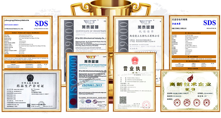 Xi'an Deli Biochemical Industry Co., Ltd. یک شرکت با فناوری پیشرفته است که در آن تخصص دارد تحقیق و توسعه، تولید و فروش سیکلودکسترین ها و مشتقات آنها. ما لوازم جانبی دارویی را با کیفیت پایدار و خدمات قابل اعتماد به مشتریان در سراسر جهان عرضه می کنیم.