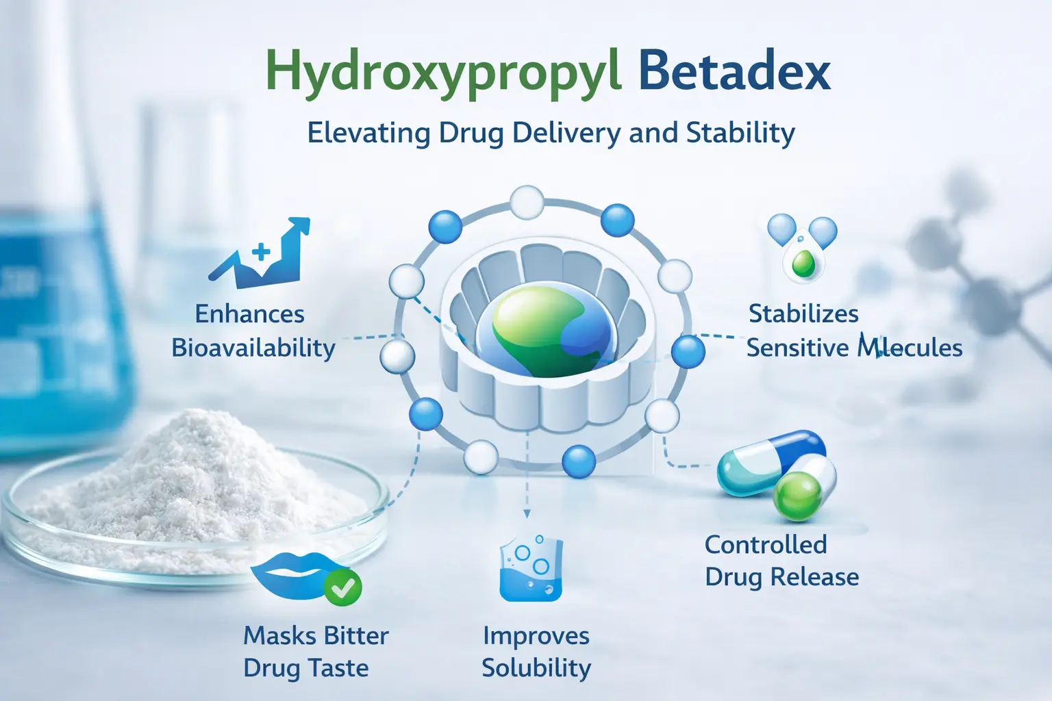 با آزادسازی کنترل شده، فرمول سازها می توانند نحوه انتشار داروها را بدون استفاده از روش های پیچیده تحویل تغییر دهند. هیدروکسی پروپیل بتادکس می تواند نحوه تعامل مولکول مهمان با مولکول میزبان را برای دستیابی به الگوهای آزادسازی فوری، پایدار یا هدفمند تغییر دهد. این تطبیق پذیری زمان لازم برای ایجاد داروهای جدید را کوتاه می کند و پیروی از برنامه های دوز را برای بیماران آسان تر می کند که این امر انطباق را بهبود می بخشد.